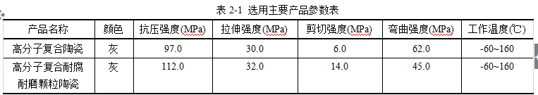 (2)高分子顆粒陶瓷是一種雙組份、填充陶瓷小顆粒、高性能表面涂層材料,主要成分是碳化硅、金屬碳化物和超硬陶瓷,具有良好的耐磨蝕和腐蝕性能,作為耐磨蝕和耐腐蝕保護(hù)涂層被廣泛的應(yīng)用于各種化工設(shè)備及通用設(shè)備。適合應(yīng)用于灰漿泵、水泵、風(fēng)機(jī)、水輪機(jī)蝸殼、凈化煙道、氧化鋁粉輸送管道等內(nèi)壁防腐耐磨局部或大面積修復(fù)。
